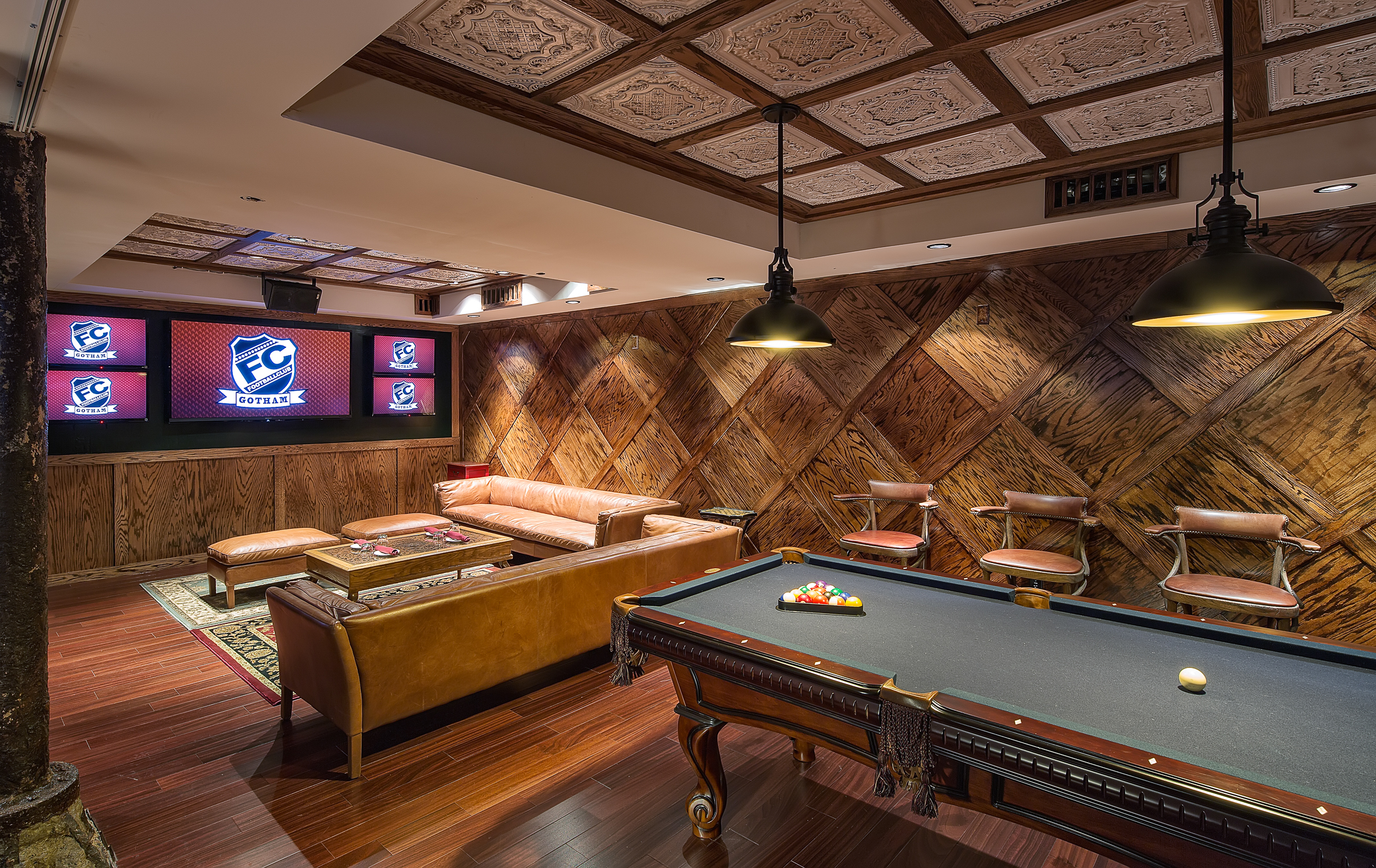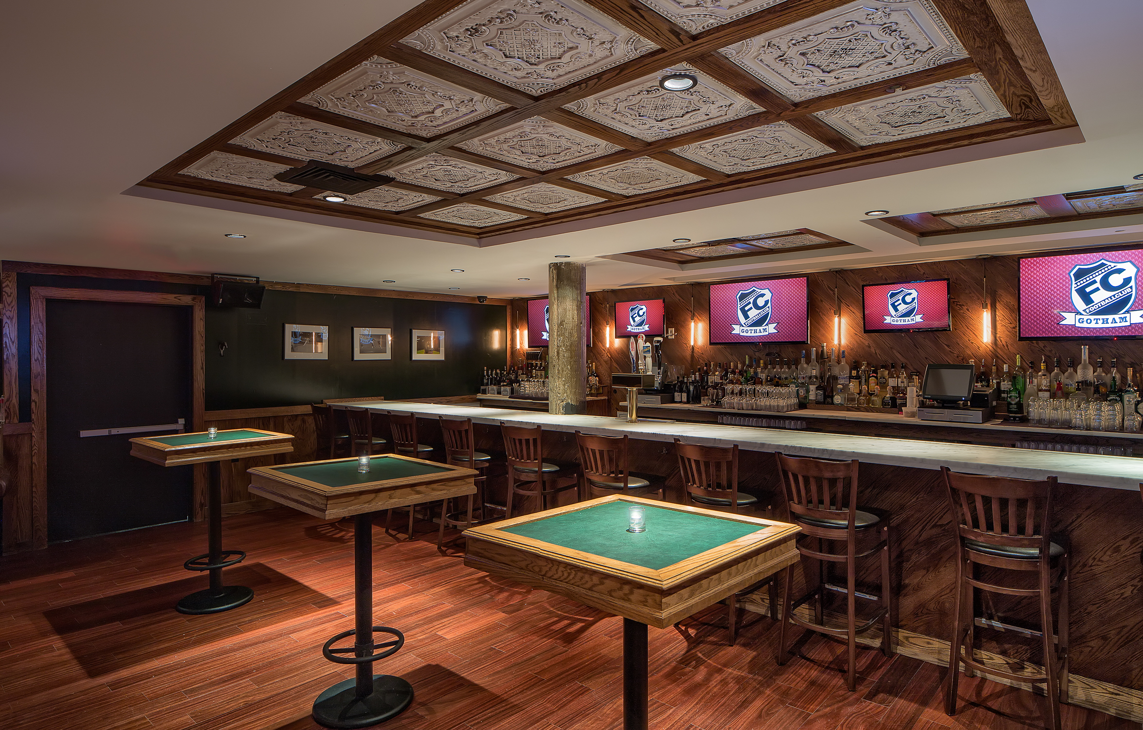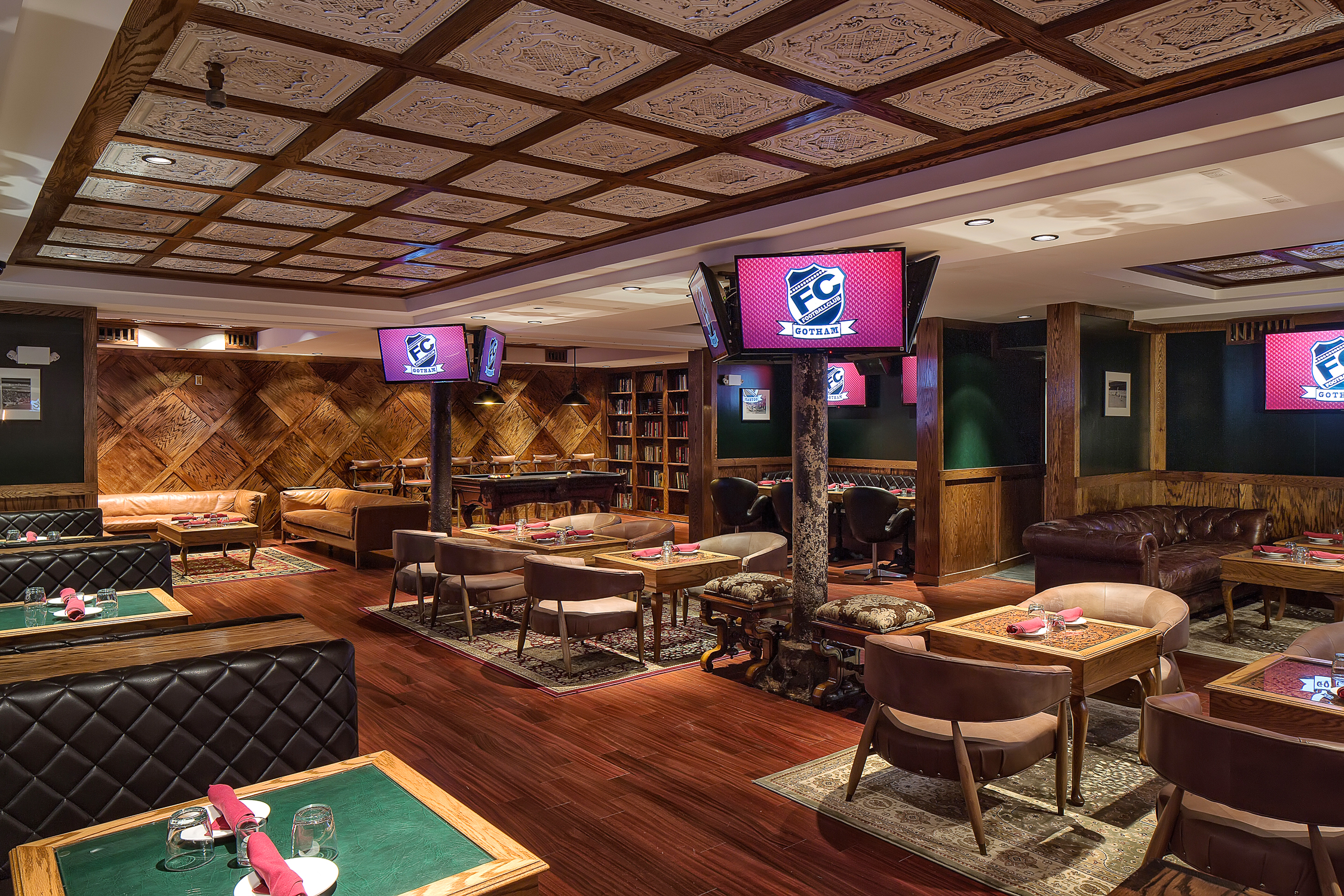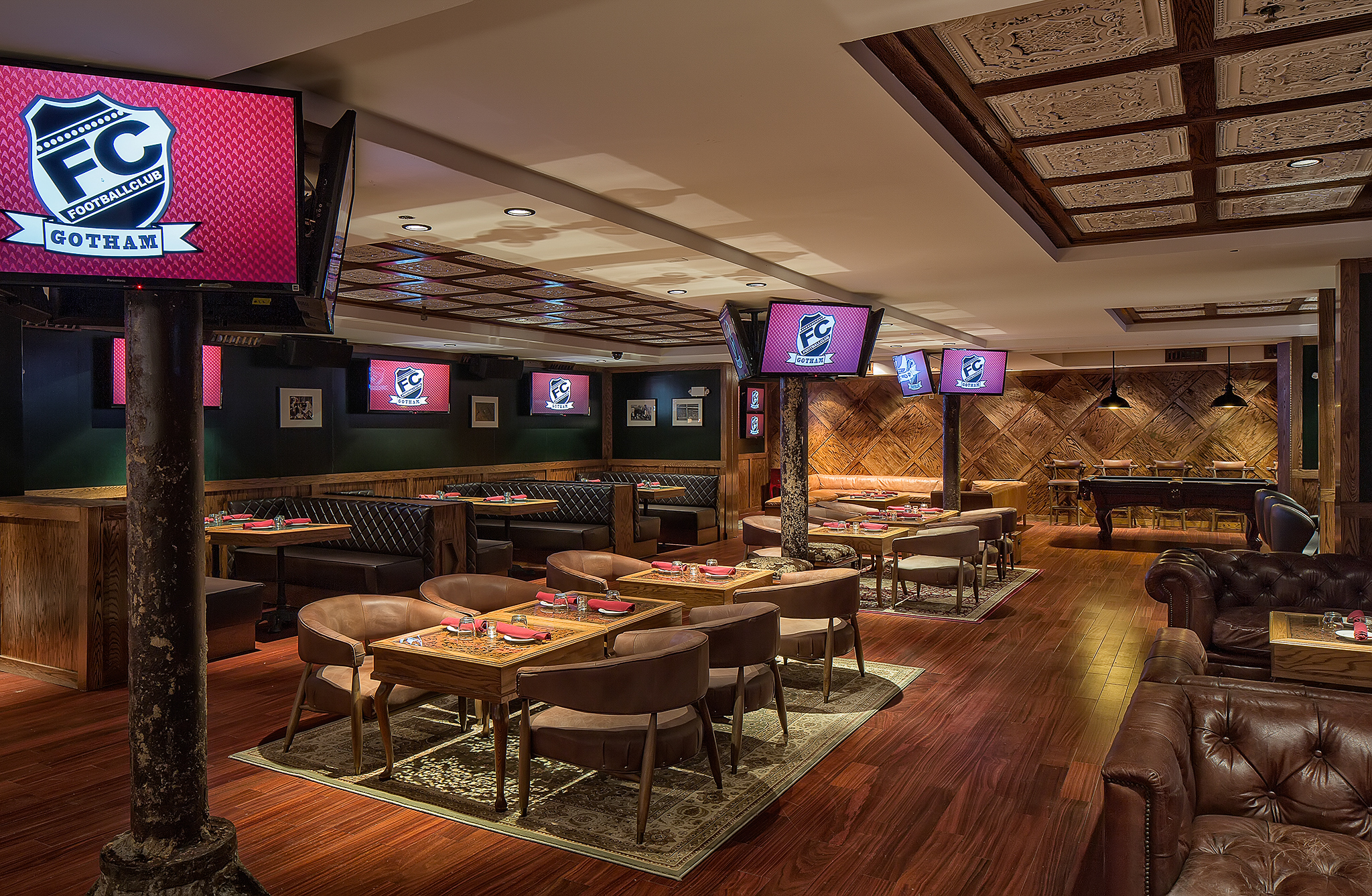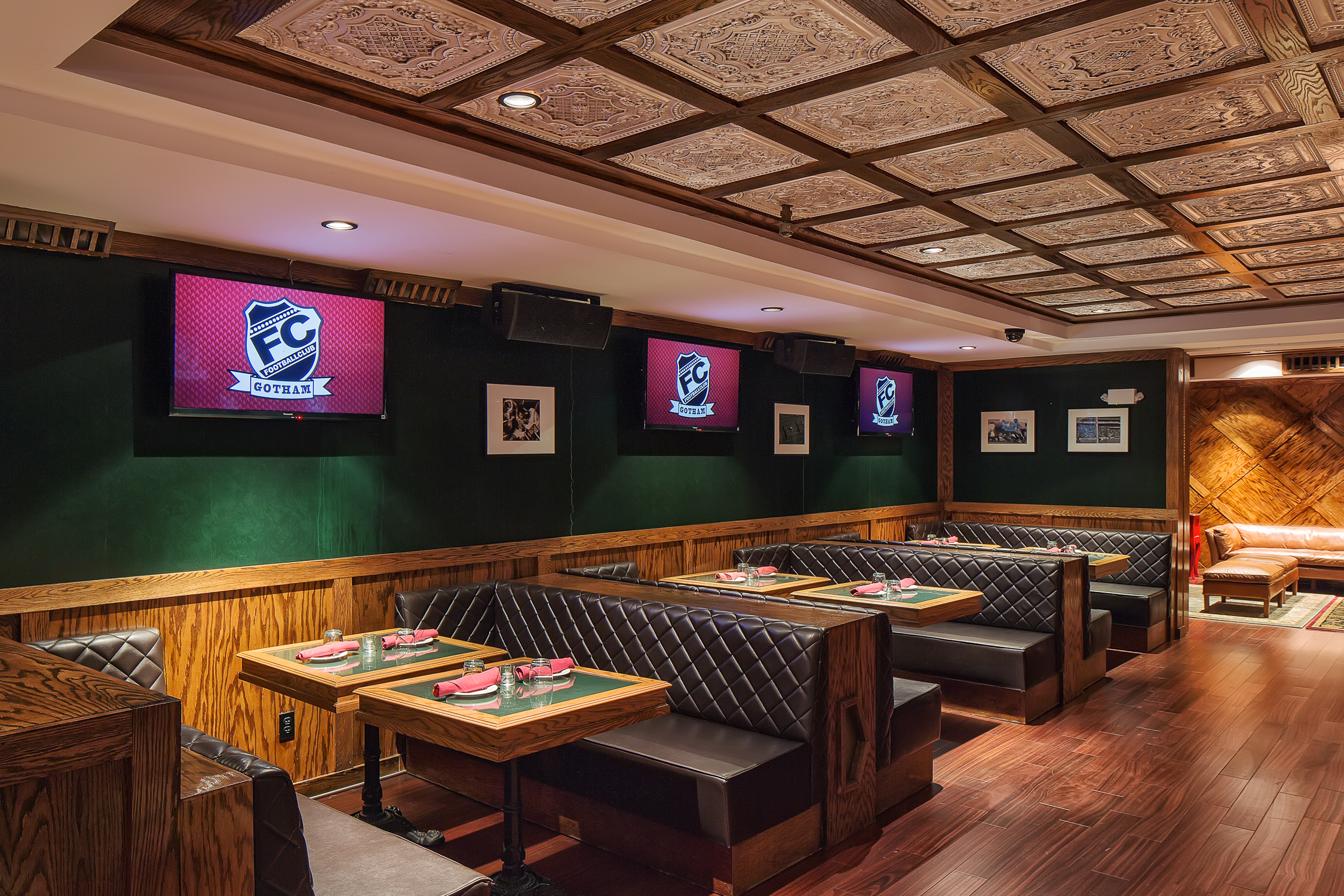 FC Gotham is a concealed membership based sportsbar & restaurant located in a basement space in the meatpacking district of Manhattan. The space replaced the famous after-hours club APT, and was a gut renovation of the entire space.